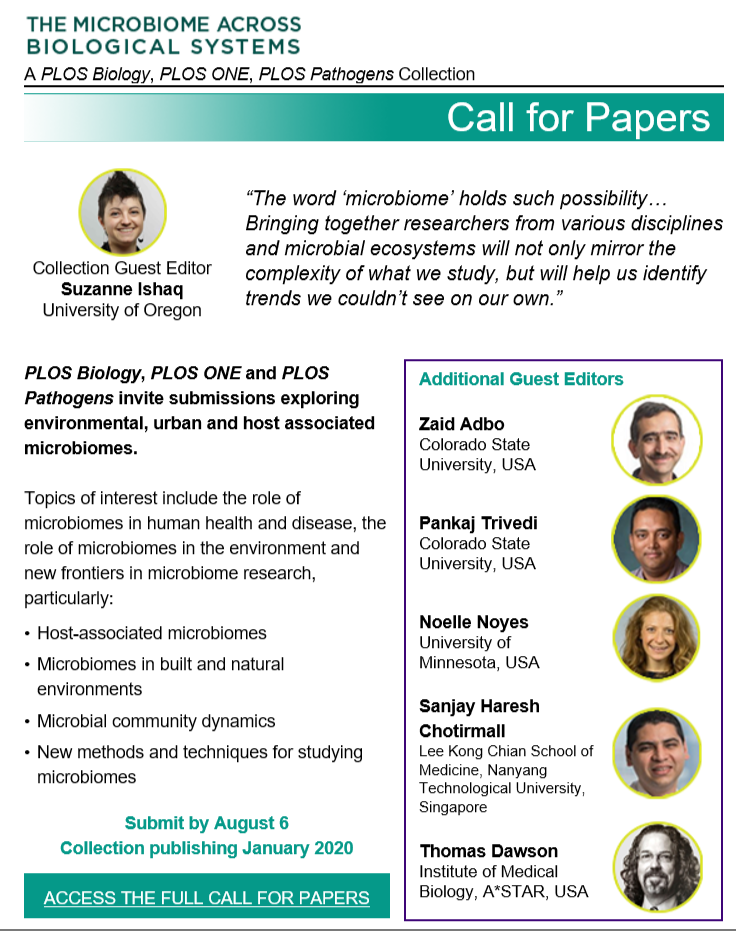 I am pleased to announce that several PLoS journals are teaming up for a special issue, titled “Microbiome Across Biological Systems”, and the call for submissions is open!