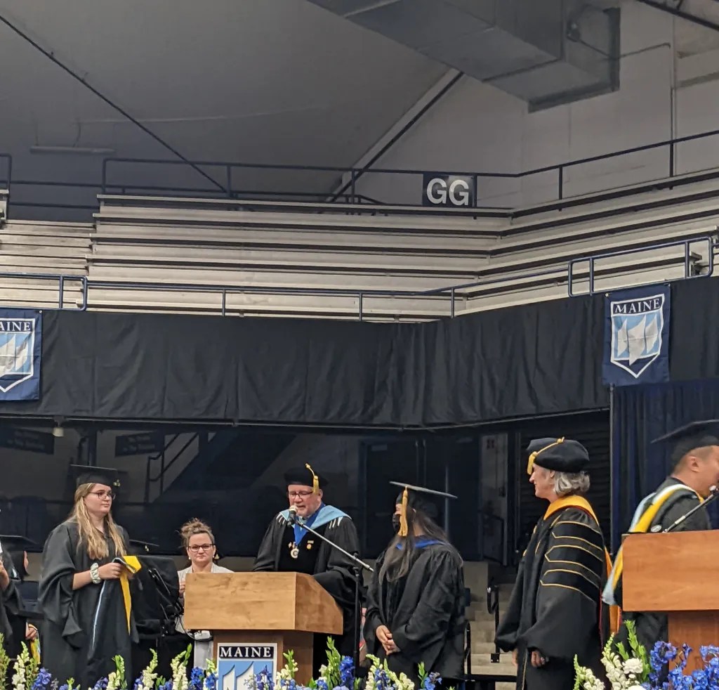 UMaine and many other universities are having in-person graduation ceremonies, and welcoming students who are graduating this year, as well as those who finished in 2021 and 2020 who were not able to walk in a regular ceremony. I made it to the ceremony for the graduates, so I could cheer on Sarah, where over 400 of the more 600 total graduate students matriculating got hooded and recognized for their achievement.