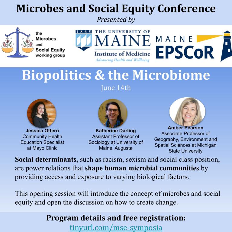 The Microbes and Social Equity working group and The University of Maine Institute of Medicine present an inaugural symposium on: