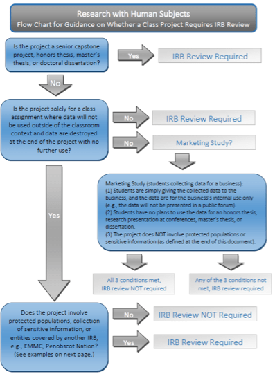 There are a number of information-gathering activities that don’t require review and approval, most of which are student projects that are part of coursework. These include interviewing one person for a biography on non-sensitive information, or interviewing multiple people on non-sensitive topics (such as asking about their favorite animal), performing a literature review or information search on non-sensitive or de-identified information, or creating science curricula.