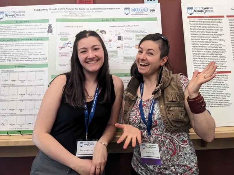 Marissa has been extremely productive in the last two years: in her first three months she contributed lab work to two publications on broccoli sprout diets in mouse models of Inflammation Bowel Disease in 2023, and has since contributed to another manuscript currently in review on glucoraphanin supplements and gut microbiome changes in people, and two more manuscripts in preparation on culturing gut microbiota, and a broccoli sprout diet in people. It’s no surprise that Marissa has been an author on so many papers in so little time — she led a publication when she was an undergraduate! You can check her Google Scholar page for more info on these papers. Marissa has also presented this work on campus at the UMaine Student Research Symposium twice, as well as attended conferences for the American Society for Nutrition and the American Society for Microbiology for professional development.