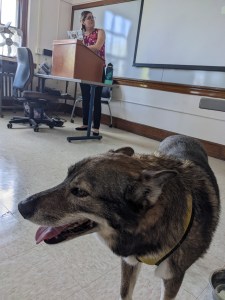 The defense was attended by her thesis committee, students in the Ishaq lab, collaborators on this project, friends and family, and Izzy the dog (pictured, and yes, Sarah preferred this picture of her at her defense to a portrait of herself. Sarah will officially pass after a few revisions to her thesis and a formal acceptance by the committee members, which is standard for graduate defenses.
