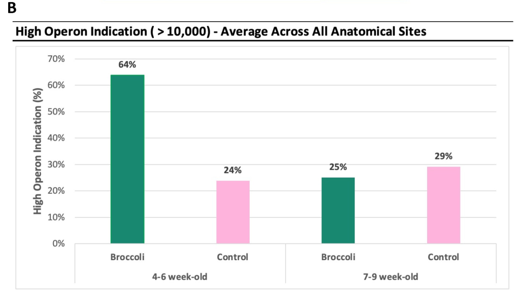 Younger mice consuming broccoli sprouts also had more types of bacteria that are known to convert glucoraphanin into sulforophane, and they had more of the genes needed to do it. Crohn’s patients usually have fewer of these types of bacteria, which are also known to provide other health benefits.